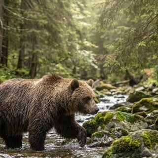 brown bear crossing river romania