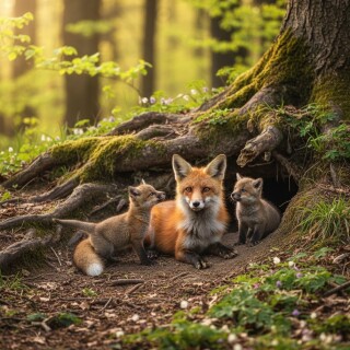 mother red fox with cubs romanian forest