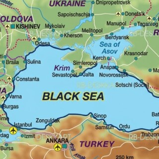 Black Sea contoured on map