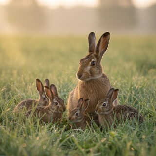 european hare mother and leverets romania