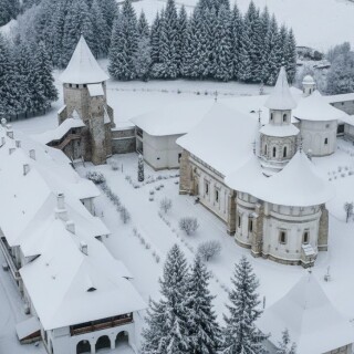 manastirea putna monastery winter ultra wide aerial