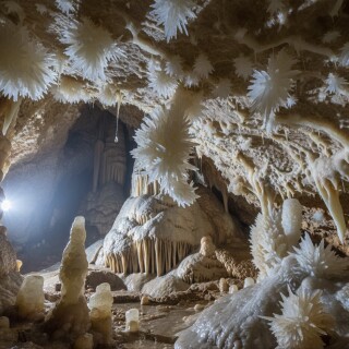 pestera sugau cave romania rare calcite flowers crystals interior